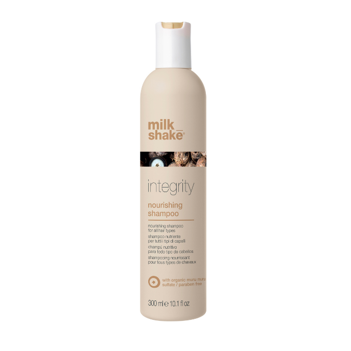 milk_shake integrity nourishing shampoo, with its paraben and sulphate-free formula, cleanses hair gently and contains organic muru muru butter to help maintain hair color. milk_shake integrity nourishing shampoo nourishes, conditions and moisturizes instantly while eliminating frizz, leaving hair soft and radiant.