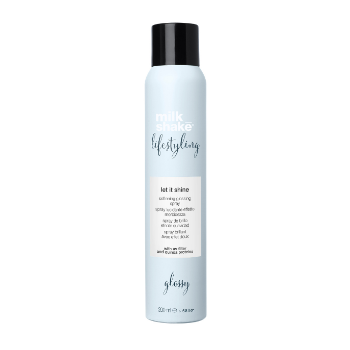 milk_shake® lifestyling let it shine is a super fine mist that leaves hair soft and shiny without weighing it down. This softening glossing spray does not give hold. Let it Shine is suitable for all hair types, it keeps static in check and has a thermo-protective action.